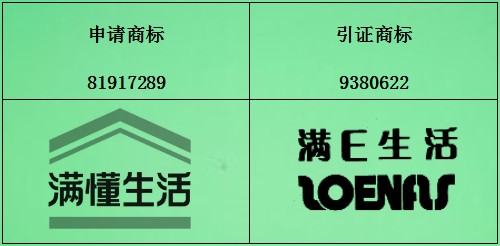 2、申请商标“满懂生活”与引证商标“满E生活LOENAS”在构成、整体外观效果、显著识别部分、呼叫及含义上均存在巨大差异,根本不构成近似,更不会造成相关公众的混淆和误认,根据《商标法》的相关规定,申请商标理应作为商标获得核准注册。